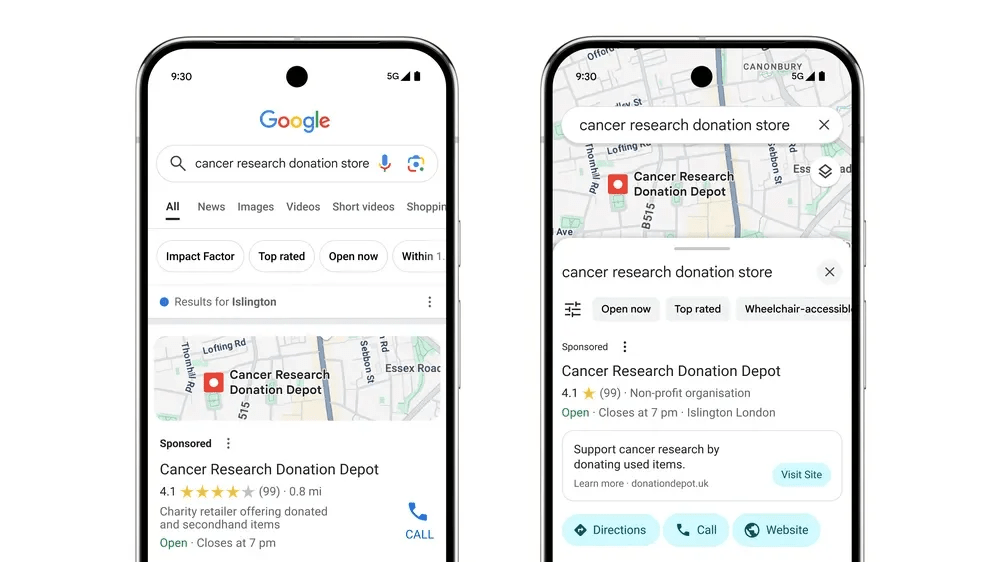 Una de las funcionalidades más interesantes que PMax desbloquea para Ad Grants es la capacidad de colocar anuncios en Google Maps. Esto se anunció en 2025 y representa la primera vez que las cuentas de Google Ad Grants pueden llegar a usuarios más allá de los resultados de búsqueda tradicionales.